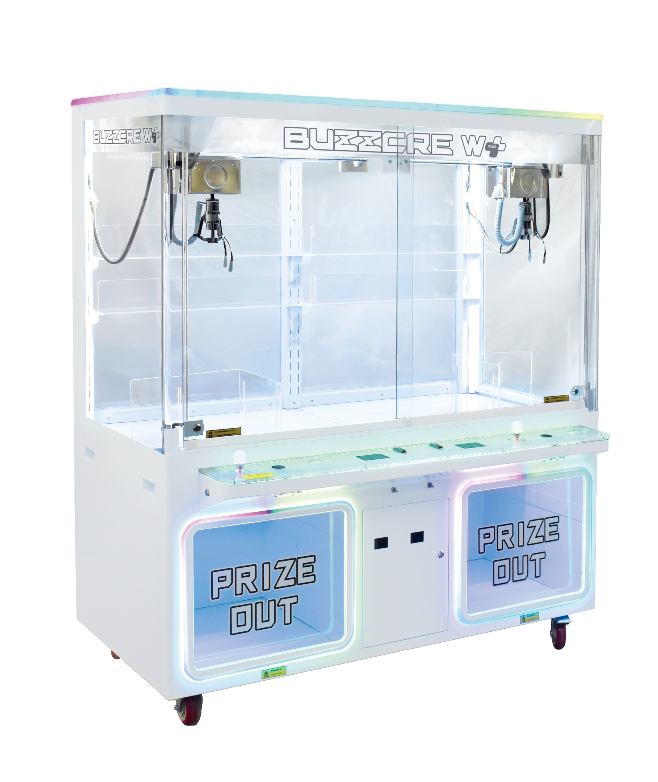 ミニクレーンマシンの「単価が低い小物景品しか扱えない」という課題を解決した一台。従来のBUZZCRE4と同じサイズながら、景品出口拡大とアームのグリップ力を強化したことで、中型サイズの景品にも対応可能になりました。