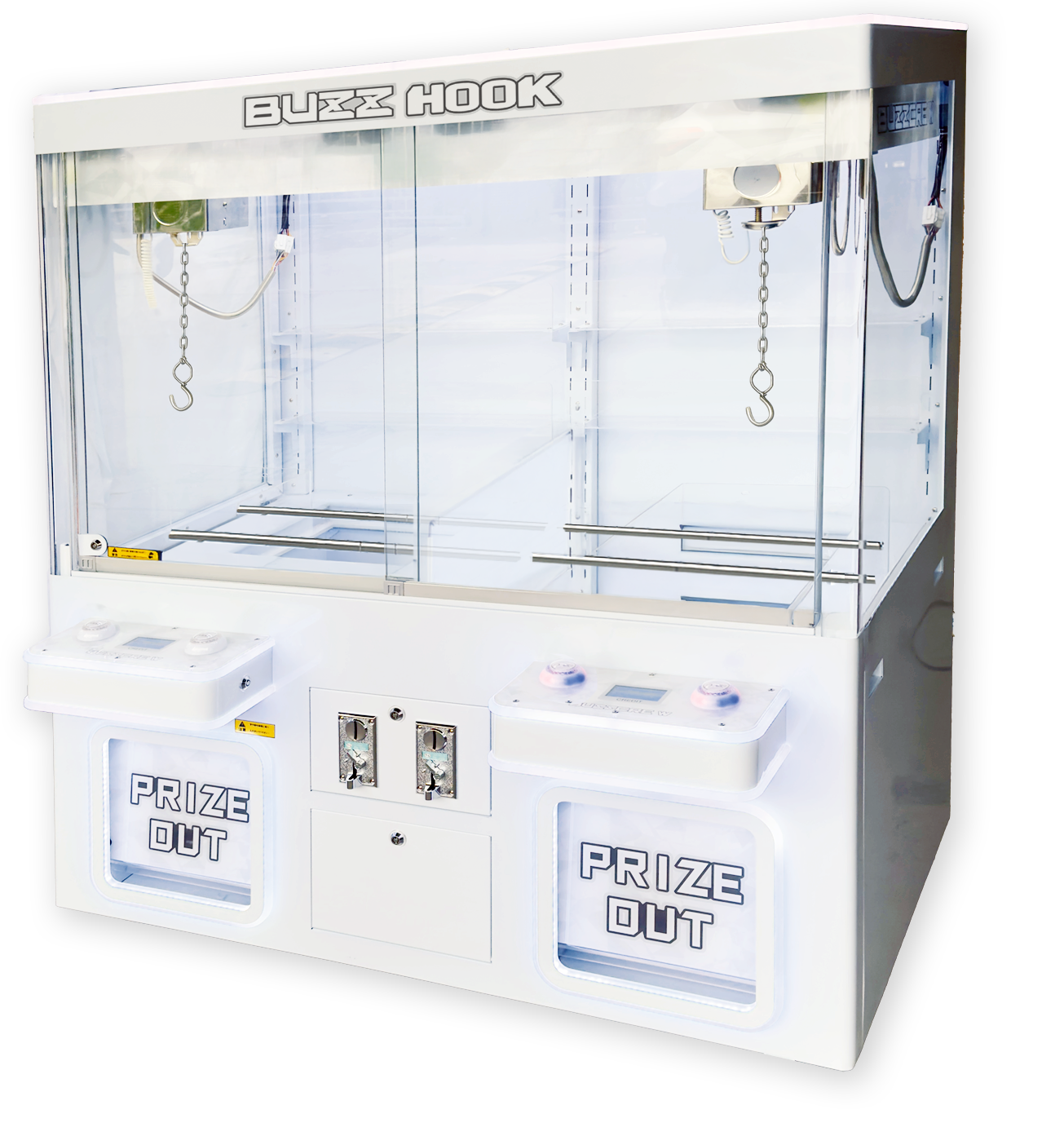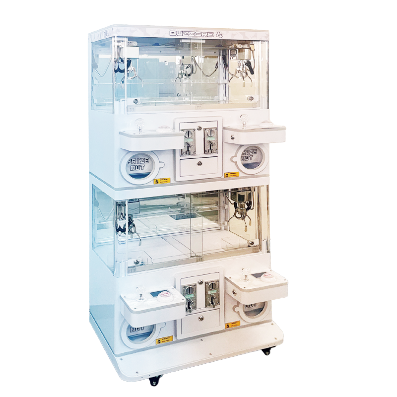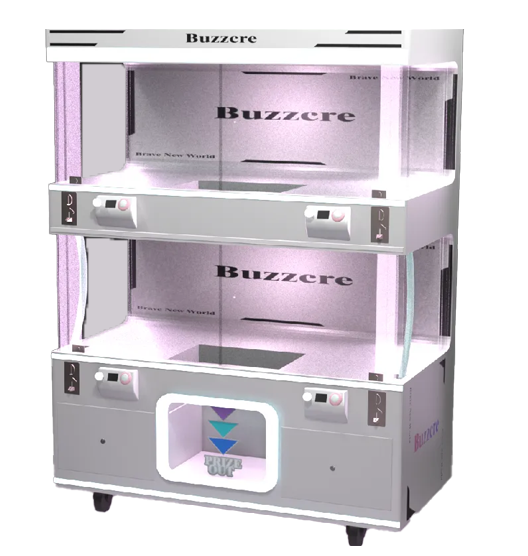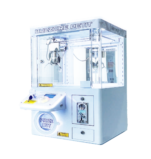 ミニクレーンマシンの「単価が低い小物景品しか扱えない」という課題を解決した一台。従来のBUZZCRE4とほぼ同じサイズながら、景品出口とアームサイズを拡大することで、中型サイズの景品にも対応可能になりました。