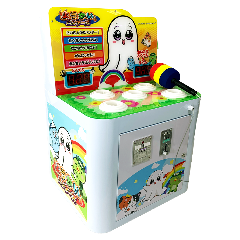 小さなお子様から大人まで楽しめるコンパクトなハンマーゲーム。幅620mm・奥行500mmの省スペース設計ながら、プレイフィールドのLED演出とお化けのキャッチーなデザインで存在感抜群。重量わずか44kgで、1人でもラクに移動できます。